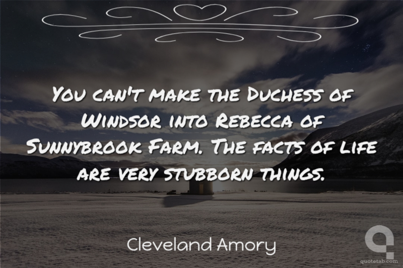 You can't make the Duchess of Windsor into Rebecca of Sunnybrook Farm. The facts of life are very stubborn things.
