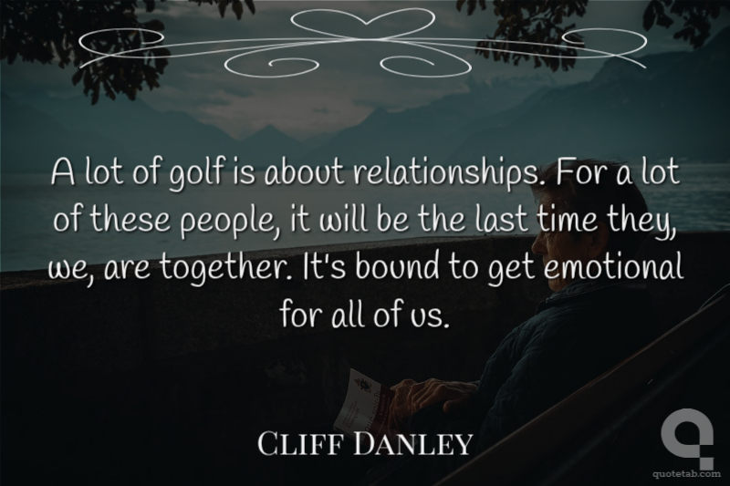 A lot of golf is about relationships. For a lot of these people, it will be the last time they, we, are together. It's bound to get emotional for all of us.