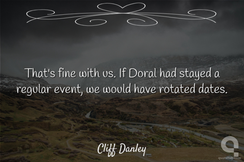 That's fine with us. If Doral had stayed a regular event, we would have rotated dates.