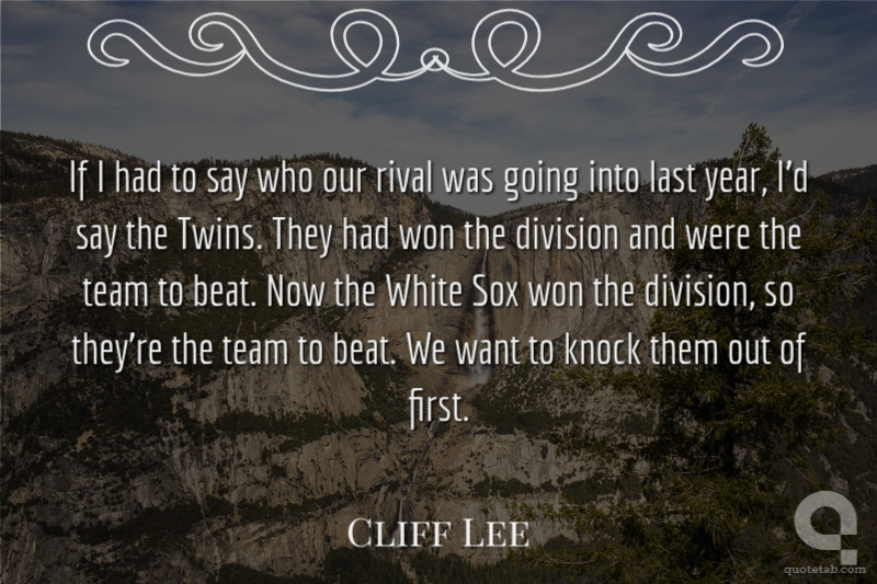 If I had to say who our rival was going into last year, I'd say the Twins. They had won the division and were the team to beat. Now the White Sox won the division, so they're the team to beat. We want to knock them out of first.