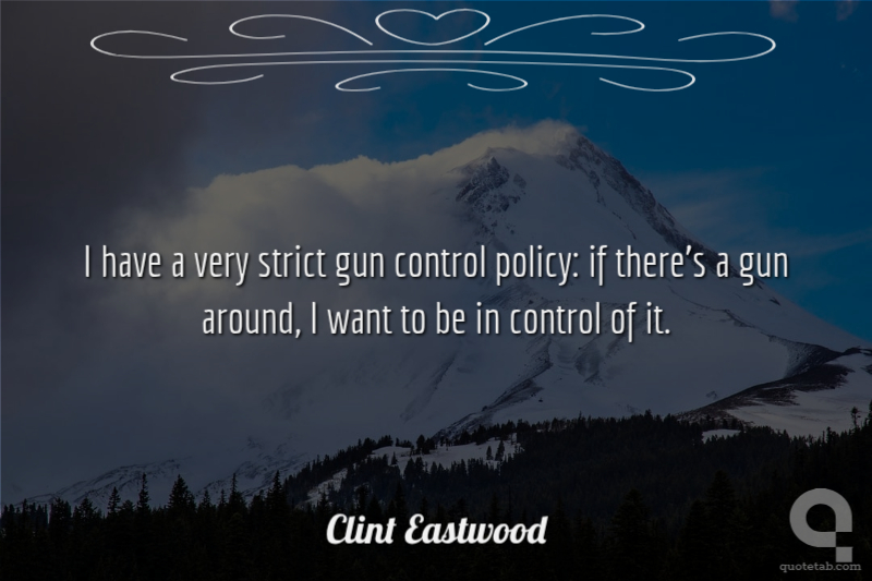 I have a very strict gun control policy: if there's a gun around, I want to be in control of it.