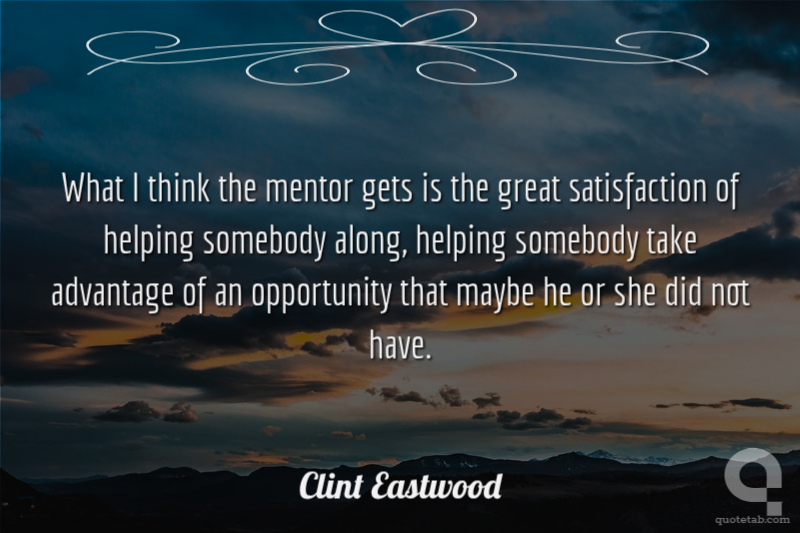 What I think the mentor gets is the great satisfaction of helping somebody along, helping somebody take advantage of an opportunity that maybe he or she did not have.