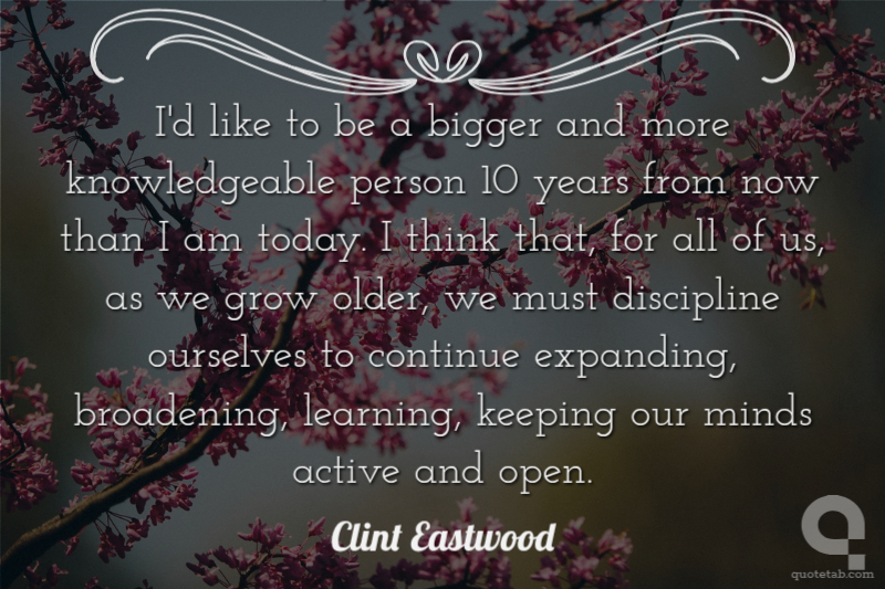I'd like to be a bigger and more knowledgeable person 10 years from now than I am today. I think that, for all of us, as we grow older, we must discipline ourselves to continue expanding, broadening, learning, keeping our minds active and open.