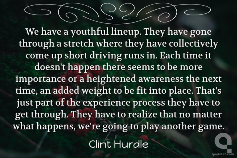 We have a youthful lineup. They have gone through a stretch where they have collectively come up short driving runs in. Each time it doesn't happen there seems to be more importance or a heightened awareness the next time, an added weight to be fit into place. That's just part of the experience process they have to get through. They have to realize that no matter what happens, we're going to play another game.