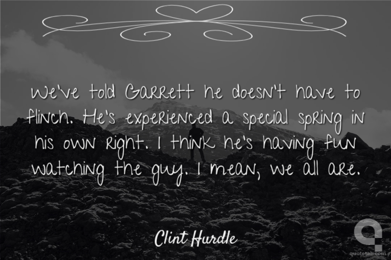 We've told Garrett he doesn't have to flinch. He's experienced a special spring in his own right. I think he's having fun watching the guy. I mean, we all are.