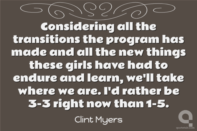 Considering all the transitions the program has made and all the new things these girls have had to endure and learn, we'll take where we are. I'd rather be 3-3 right now than 1-5.