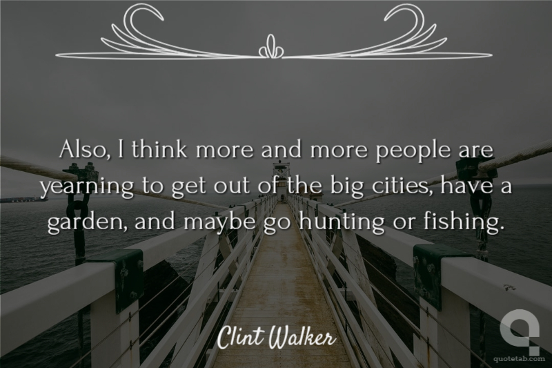 Also, I think more and more people are yearning to get out of the big cities, have a garden, and maybe go hunting or fishing.