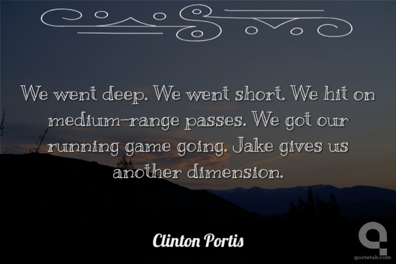 We went deep. We went short. We hit on medium-range passes. We got our running game going. Jake gives us another dimension.