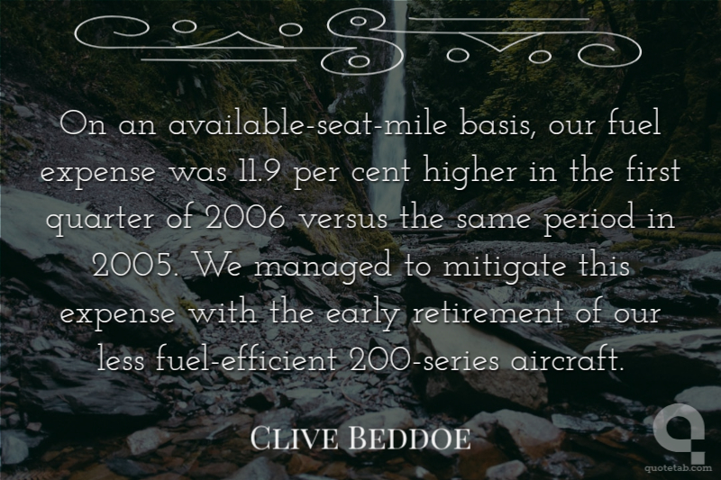 On an available-seat-mile basis, our fuel expense was 11.9 per cent higher in the first quarter of 2006 versus the same period in 2005. We managed to mitigate this expense with the early retirement of our less fuel-efficient 200-series aircraft.