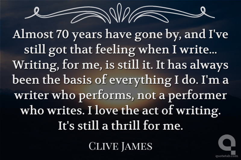 Almost 70 years have gone by, and I've still got that feeling when I write... Writing, for me, is still it. It has always been the basis of everything I do. I'm a writer who performs, not a performer who writes. I love the act of writing. It's still a thrill for me.