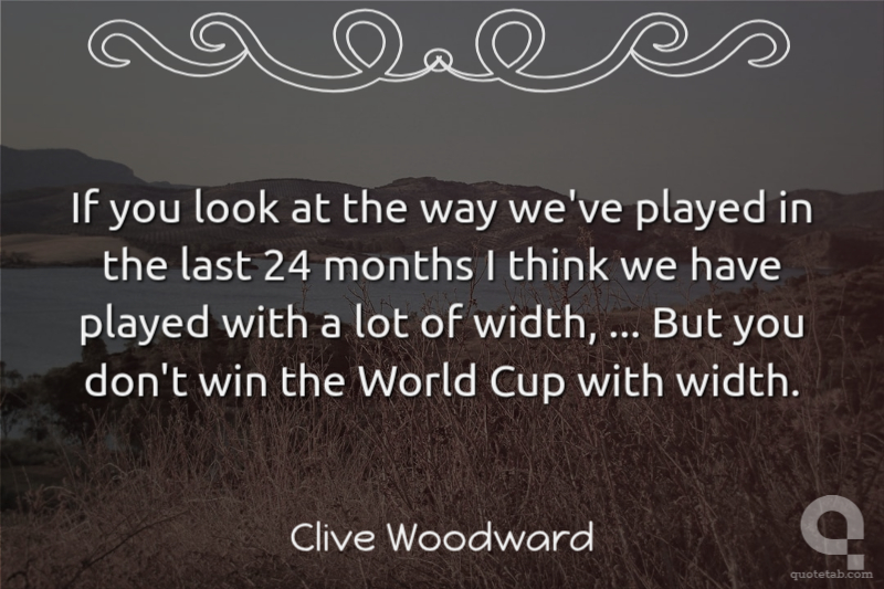 If you look at the way we've played in the last 24 months I think we have played with a lot of width, ... But you don't win the World Cup with width.