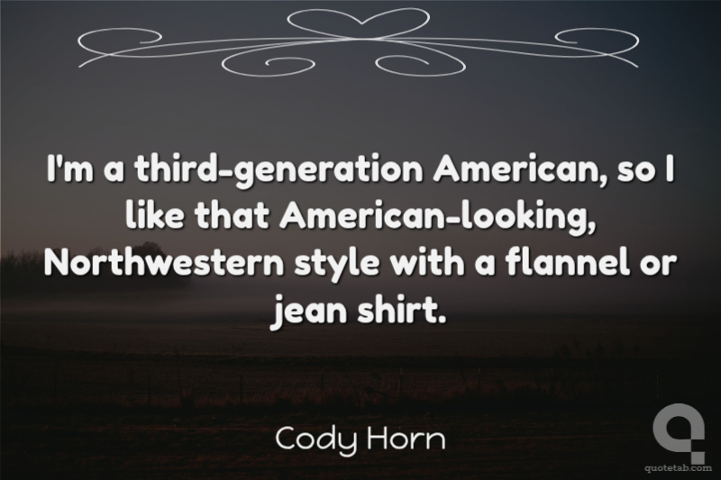I'm a third-generation American, so I like that American-looking, Northwestern style with a flannel or jean shirt.