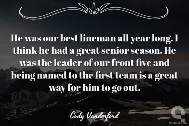 He was our best lineman all year long. I think he had a great senior season. He was the leader of our front five and being named to the first team is a great way for him to go out.