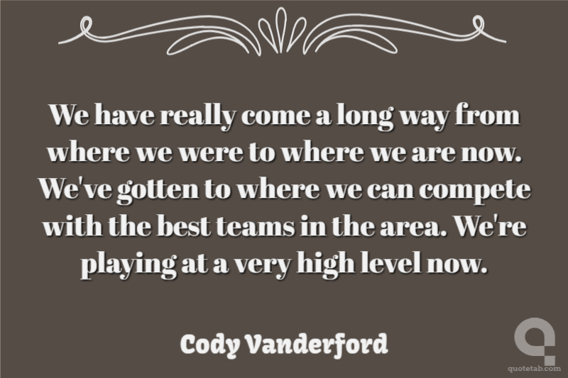 We have really come a long way from where we were to where we are now. We've gotten to where we can compete with the best teams in the area. We're playing at a very high level now.