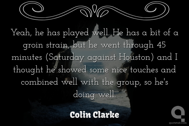 Yeah, he has played well. He has a bit of a groin strain, but he went through 45 minutes (Saturday against Houston) and I thought he showed some nice touches and combined well with the group, so he's doing well.