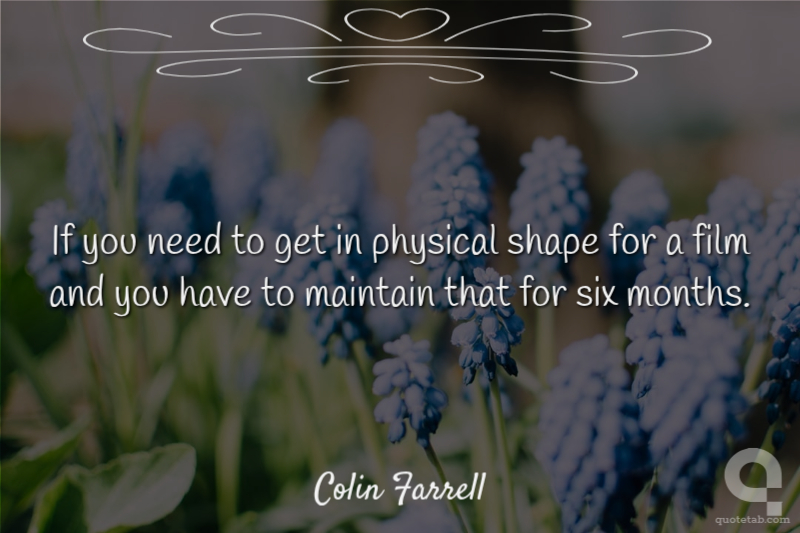 If you need to get in physical shape for a film and you have to maintain that for six months.