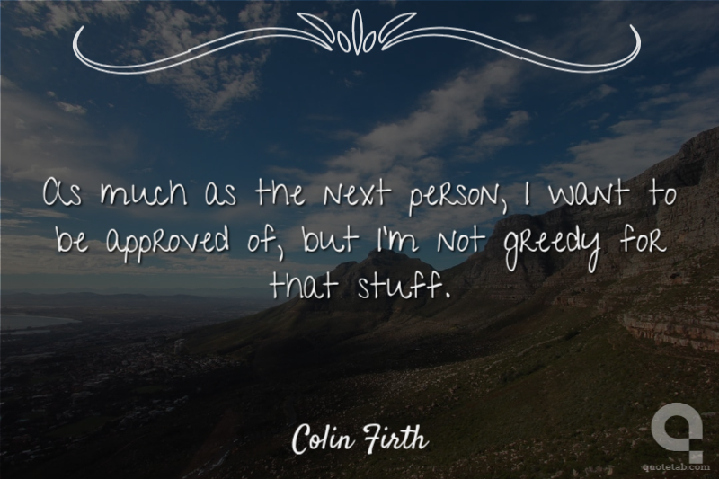 As much as the next person, I want to be approved of, but I'm not greedy for that stuff.