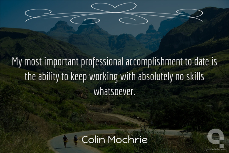 My most important professional accomplishment to date is the ability to keep working with absolutely no skills whatsoever.