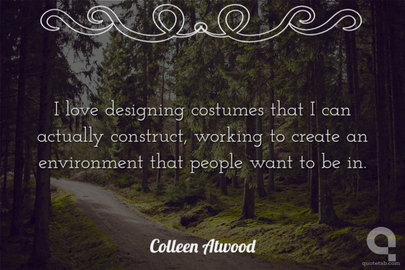 I love designing costumes that I can actually construct, working to create an environment that people want to be in.