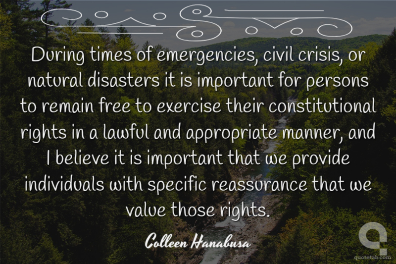 During times of emergencies, civil crisis, or natural disasters it is important for persons to remain free to exercise their constitutional rights in a lawful and appropriate manner, and I believe it is important that we provide individuals with specific reassurance that we value those rights.