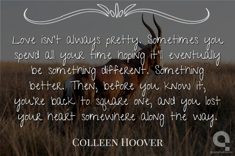 Love isn't always pretty. Sometimes you spend all your time hoping it'll eventually be something different. Something better. Then, before you know it, you're back to square one, and you lost your heart somewhere along the way.