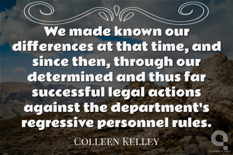 We made known our differences at that time, and since then, through our determined and thus far successful legal actions against the department's regressive personnel rules.