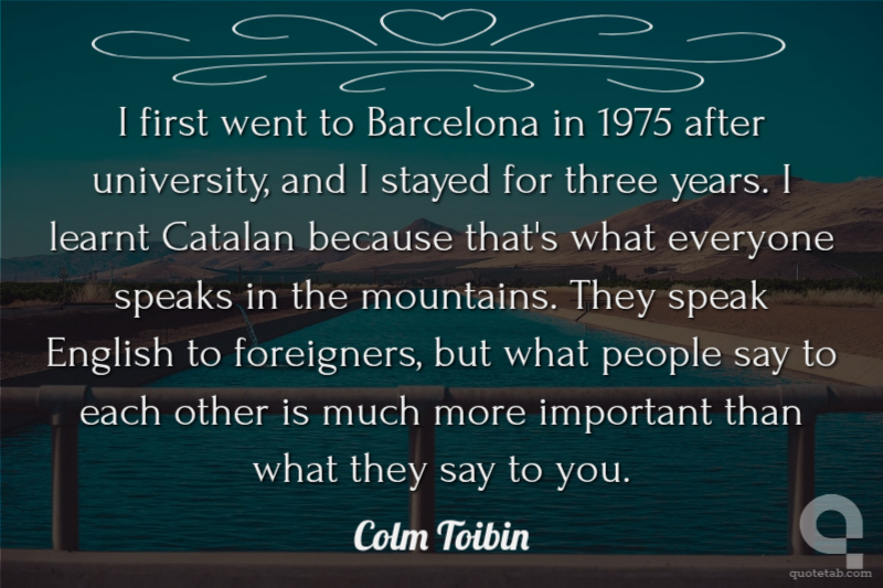 I first went to Barcelona in 1975 after university, and I stayed for three years. I learnt Catalan because that's what everyone speaks in the mountains. They speak English to foreigners, but what people say to each other is much more important than what they say to you.
