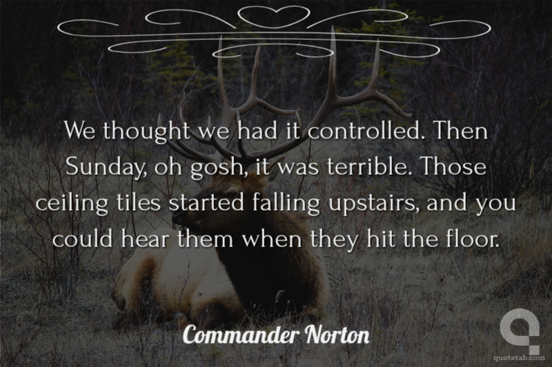 We thought we had it controlled. Then Sunday, oh gosh, it was terrible. Those ceiling tiles started falling upstairs, and you could hear them when they hit the floor.