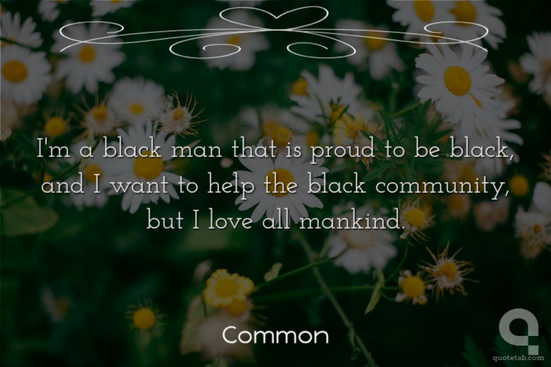 I'm a black man that is proud to be black, and I want to help the black community, but I love all mankind.