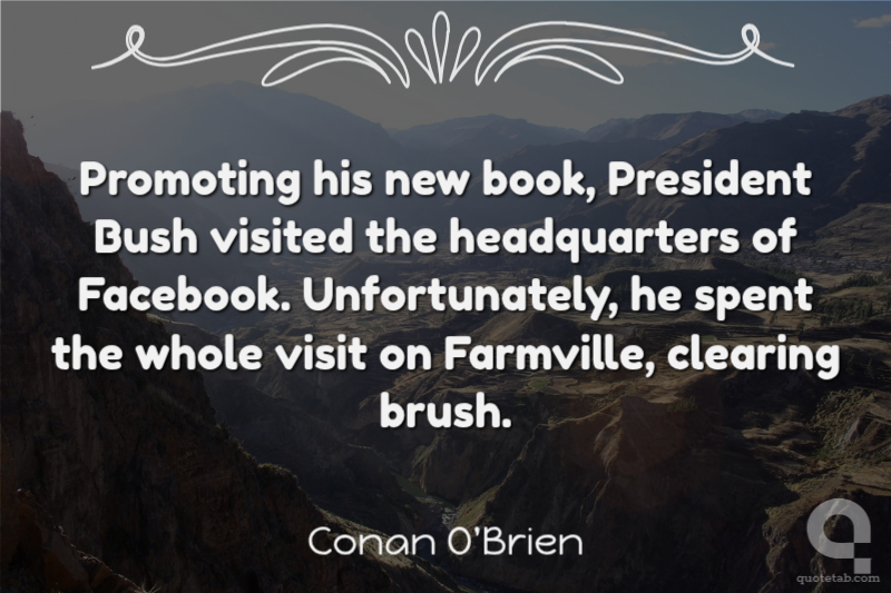 Promoting his new book, President Bush visited the headquarters of Facebook. Unfortunately, he spent the whole visit on Farmville, clearing brush.