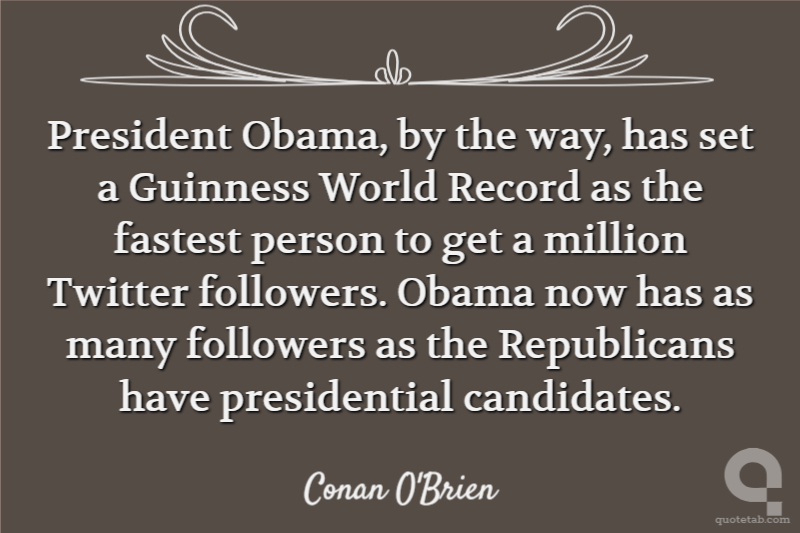 President Obama, by the way, has set a Guinness World Record as the fastest person to get a million Twitter followers. Obama now has as many followers as the Republicans have presidential candidates.