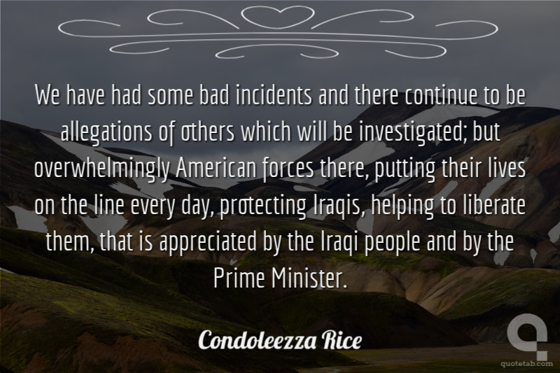 We have had some bad incidents and there continue to be allegations of others which will be investigated; but overwhelmingly American forces there, putting their lives on the line every day, protecting Iraqis, helping to liberate them, that is appreciated by the Iraqi people and by the Prime Minister.