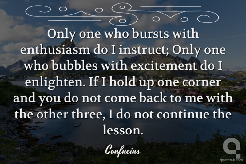 Only one who bursts with enthusiasm do I instruct; Only one who bubbles with excitement do I enlighten. If I hold up one corner and you do not come back to me with the other three, I do not continue the lesson.