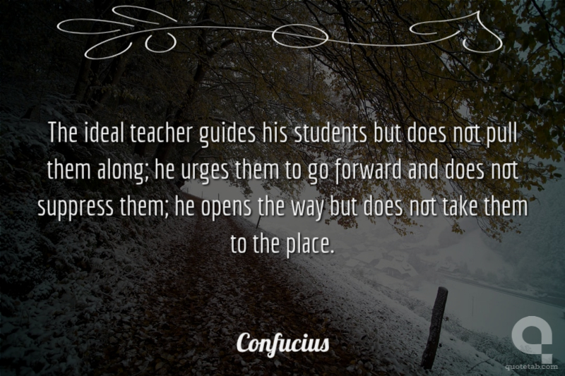 The ideal teacher guides his students but does not pull them along; he urges them to go forward and does not suppress them; he opens the way but does not take them to the place.