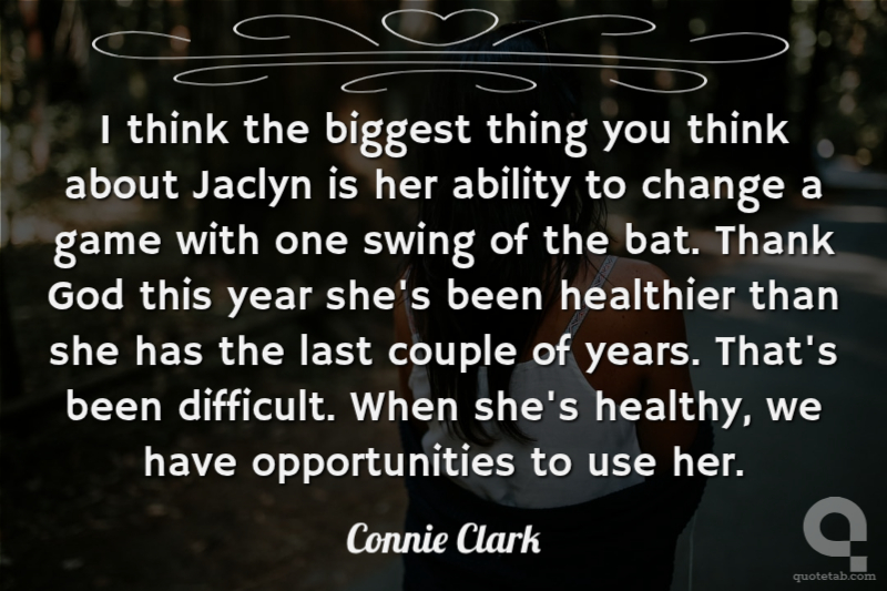 I think the biggest thing you think about Jaclyn is her ability to change a game with one swing of the bat. Thank God this year she's been healthier than she has the last couple of years. That's been difficult. When she's healthy, we have opportunities to use her.