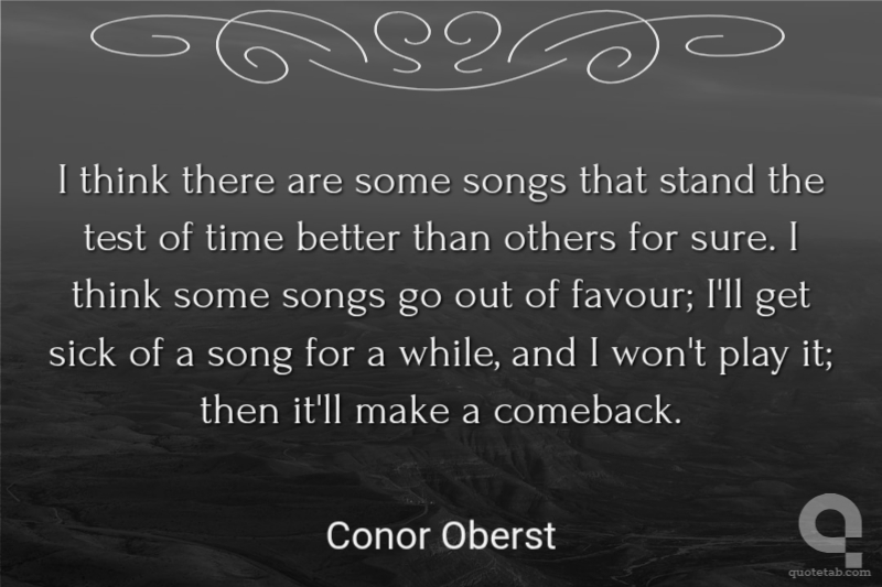 I think there are some songs that stand the test of time better than others for sure. I think some songs go out of favour; I'll get sick of a song for a while, and I won't play it; then it'll make a comeback.