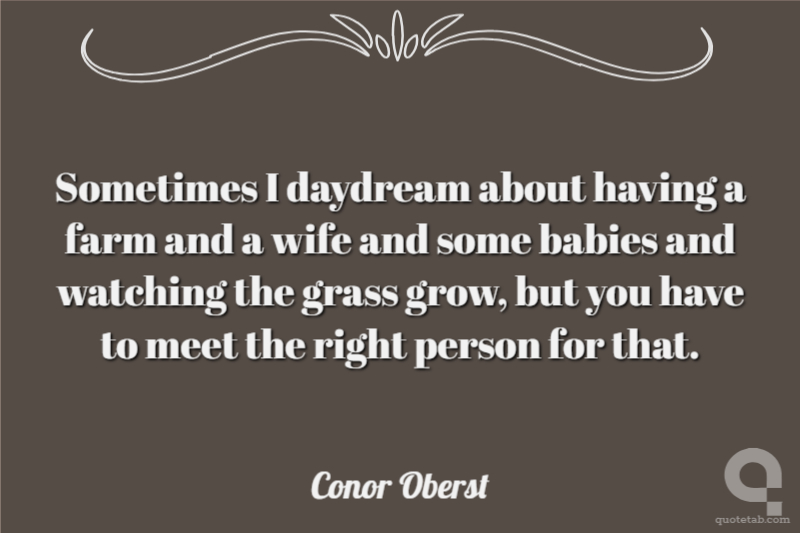 Sometimes I daydream about having a farm and a wife and some babies and watching the grass grow, but you have to meet the right person for that.