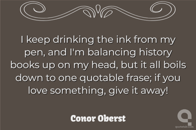 I keep drinking the ink from my pen, and I'm balancing history books up on my head, but it all boils down to one quotable frase; if you love something, give it away!
