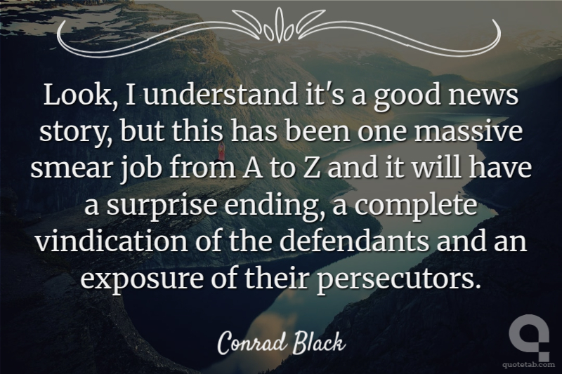 Look, I understand it's a good news story, but this has been one massive smear job from A to Z and it will have a surprise ending, a complete vindication of the defendants and an exposure of their persecutors.