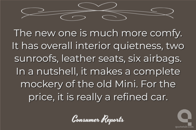 The new one is much more comfy. It has overall interior quietness, two sunroofs, leather seats, six airbags. In a nutshell, it makes a complete mockery of the old Mini. For the price, it is really a refined car.