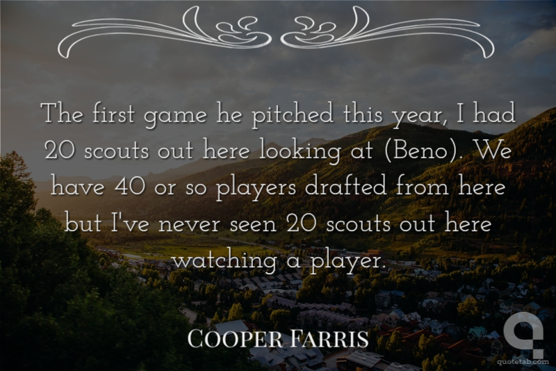 The first game he pitched this year, I had 20 scouts out here looking at (Beno). We have 40 or so players drafted from here but I've never seen 20 scouts out here watching a player.