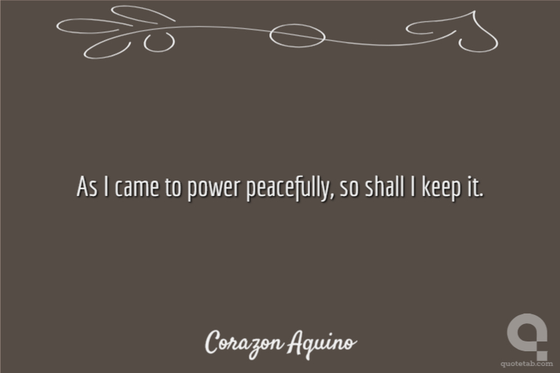 Maria Corazon "Cory" Sumulong Cojuangco-Aquino, popularly known as Cory Aquino, was a Filipino politician who served as the 11th President of the Philippines, the first woman to hold that office and the first female president in Asia. Aquino was the most prominent figure of the 1986 People Power Revolution, which toppled the 20-year authoritarian rule of President Ferdinand E. Marcos and restored democracy to the Philippines. She was named Time magazine's "Woman of the Year" in 1986. Prior to this,...