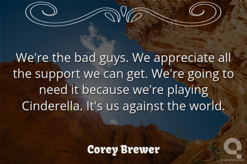 We're the bad guys. We appreciate all the support we can get. We're going to need it because we're playing Cinderella. It's us against the world.