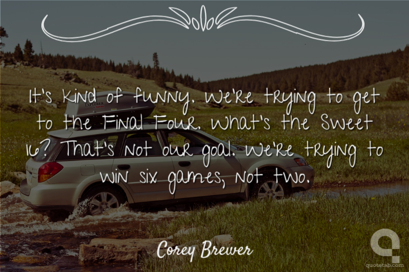 It's kind of funny. We're trying to get to the Final Four. What's the Sweet 16? That's not our goal. We're trying to win six games, not two.