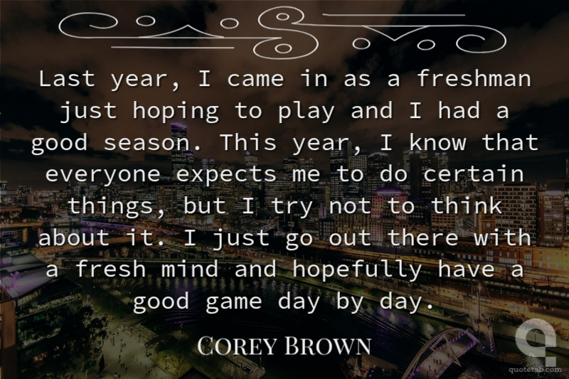 Last year, I came in as a freshman just hoping to play and I had a good season. This year, I know that everyone expects me to do certain things, but I try not to think about it. I just go out there with a fresh mind and hopefully have a good game day by day.