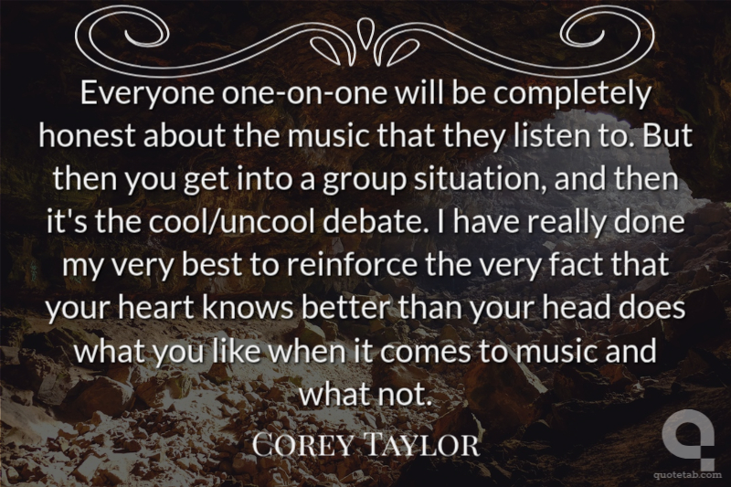Everyone one-on-one will be completely honest about the music that they listen to. But then you get into a group situation, and then it's the cool/uncool debate. I have really done my very best to reinforce the very fact that your heart knows better than your head does what you like when it comes to music and what not.