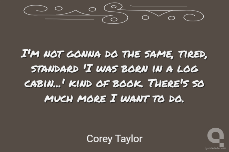I'm not gonna do the same, tired, standard 'I was born in a log cabin...' kind of book. There's so much more I want to do.