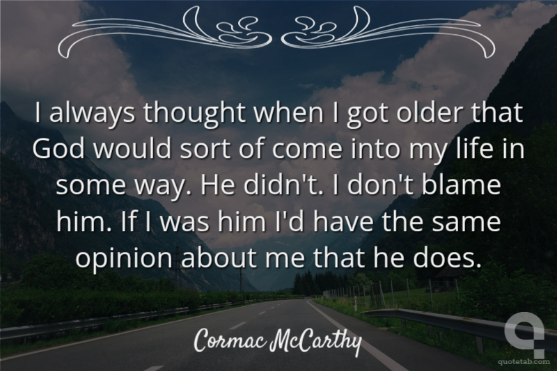 I always thought when I got older that God would sort of come into my life in some way. He didn't. I don't blame him. If I was him I'd have the same opinion about me that he does.