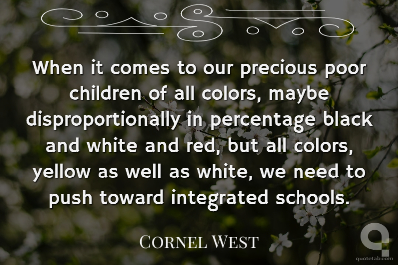 When it comes to our precious poor children of all colors, maybe disproportionally in percentage black and white and red, but all colors, yellow as well as white, we need to push toward integrated schools.