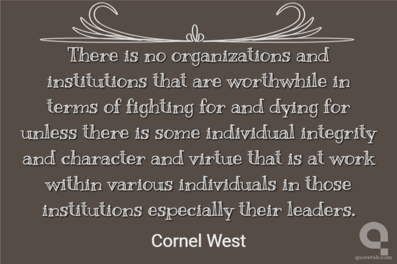 There is no organizations and institutions that are worthwhile in terms of fighting for and dying for unless there is some individual integrity and character and virtue that is at work within various individuals in those institutions especially their leaders.